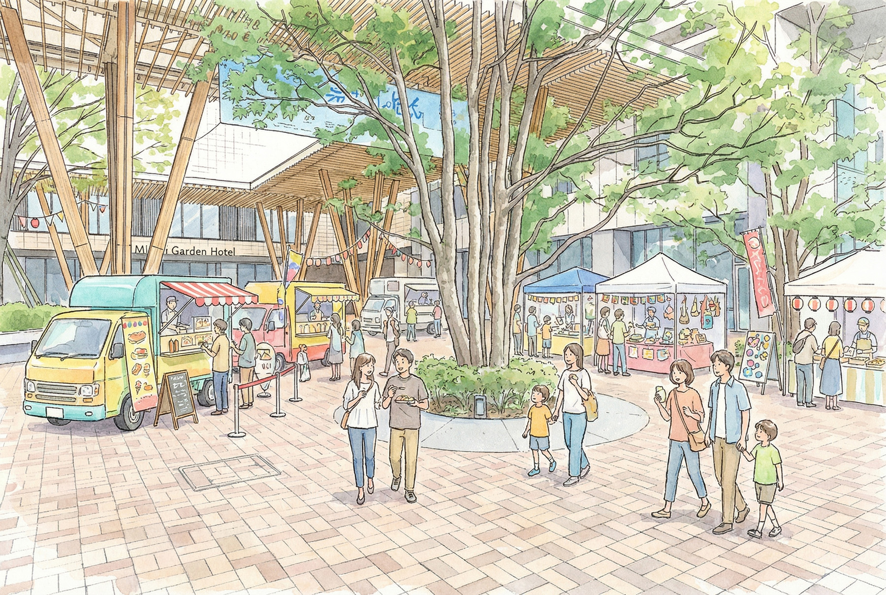 イベントを彩るグルメやブースは、ぜひ地域のお店や事業者の方に。住人に知ってもらい、楽しませ、触れ合える場にしてください!
